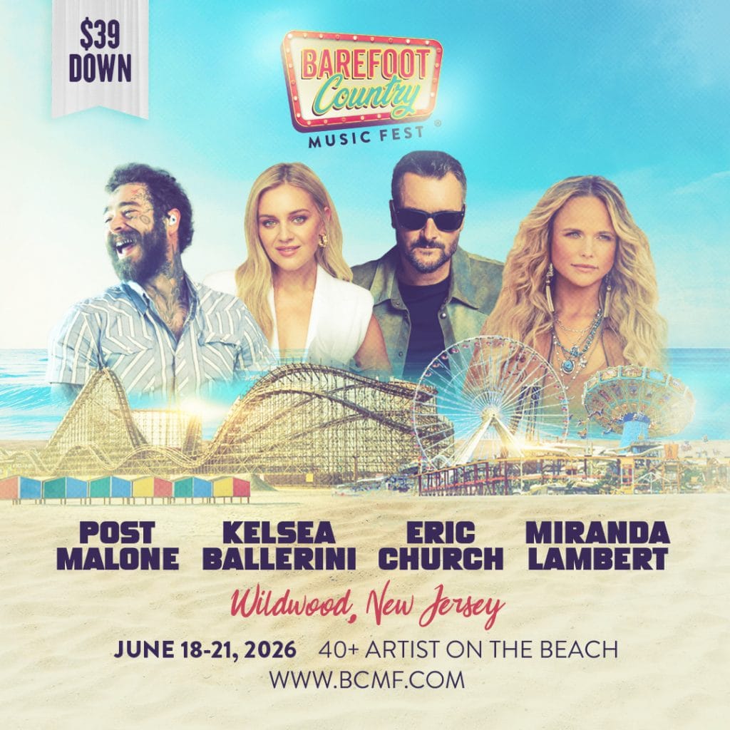 Put that post-holiday jingle to good use—invest in memories, not things. Secure your BCMF tickets for June and plan your summer TODAY. 2026 is going to be all about seeing MORE. LIVE. MUSIC. Do not miss honky tonk paradise with Post Malone, Kelsea Ballerini, Eric Church, Miranda Lambert, Cole Swindell, Tucker Wetmore, Ty Myers, Shaboozey, Dasha + more on the beaches of Wildwood, NJ!